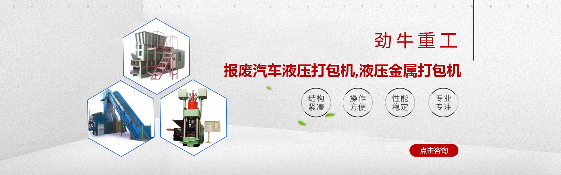 主营产品报废汽车液压打包机,液压金属打包机,金属屑压块机等,公司设有专业安装团队,可一站式安装服务;全国顾问团队支持,服务人员拥有丰富的一线实战经验;同等价格,我们配置更高,同等配置,我们价格更低;为合作伙伴提供:专业、有效、全面的服务。